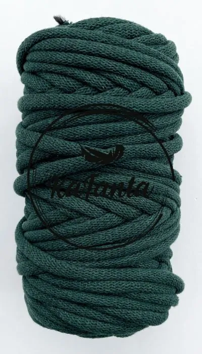 - Bavlnená šnúra KaFanta 9 mm vo farbe khakibottle green, s ktorou môžete drhať aj háčkovať,