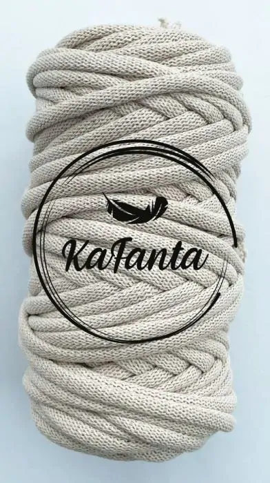 - Bavlnená šnúra KaFanta 9 mm vo farbe light beige, s ktorou môžete drhať aj háčkovať,