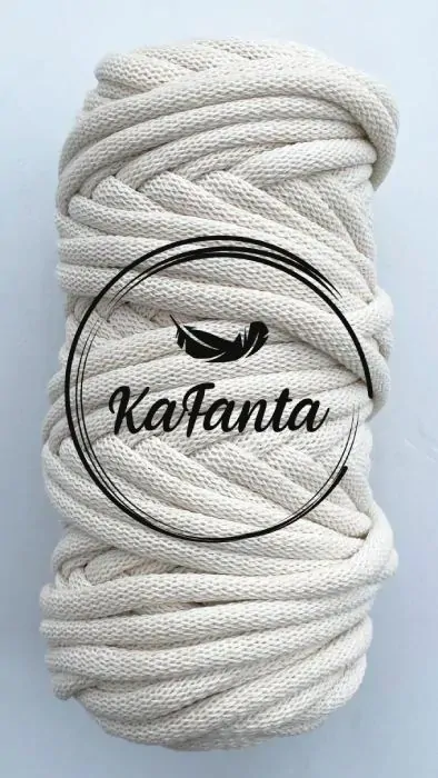 - Bavlnená šnúra KaFanta 9 mm vo farbe natural, s ktorou môžete drhať aj háčkovať,