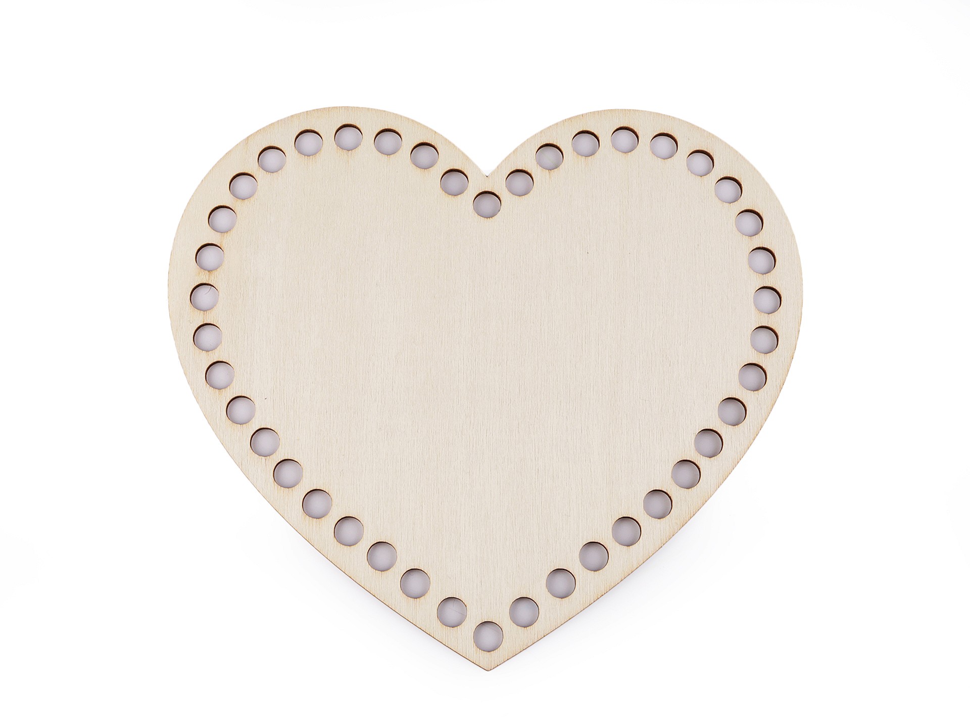 Drevené srdce s vyvŕtanými otvormi ideálne na háčkovanie a výrobu košíkov.