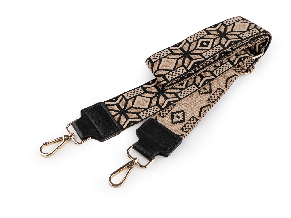 - Krásny dizajnový látkový popruh s karabínami béžová/zlatá - dodá šmrnc každej kabelke.