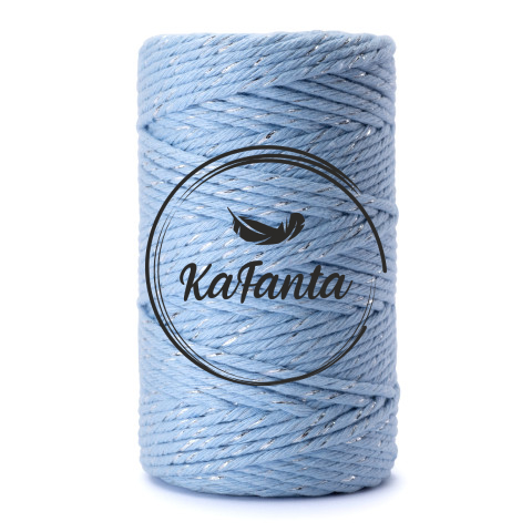 - Vysoko kvalitné macrame priadze PRÉMIOVEJ kvality značky KaFanta vo svetlo modrej farbe so striebornou nitkou,