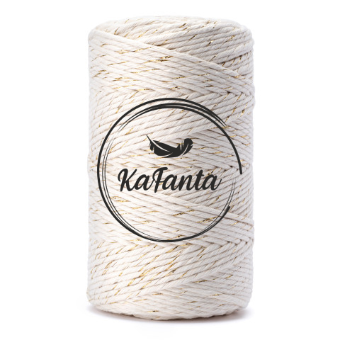 - Vysoko kvalitné macrame priadze PRÉMIOVEJ kvality značky KaFanta v natural farbe so zlatou nitkou,