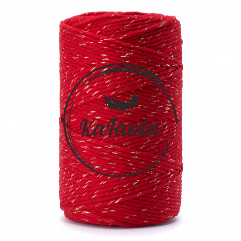 Vysoko kvalitné macrame priadze PRÉMIOVEJ kvality značky KaFanta v červenej farbe so zlatou,